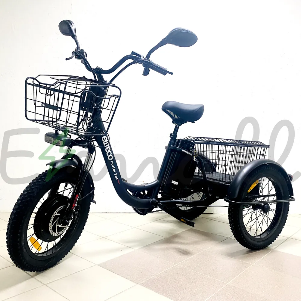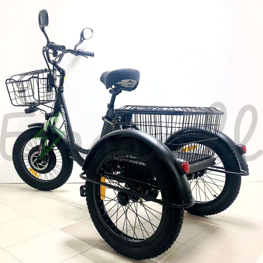 ТРИЦИКЛ ELTRECO PORTER FAT 500 UP!  – это современный трехколесный грузовой электротранспорт. Оснащен мощным электродвигателем в 500W, устойчивый и надежный в езде. С ним можно работать на даче, в саду, использовать в поездках по магазинам или для перевозки небольших грузов. Он подходит даже для обычных велопрогулок.