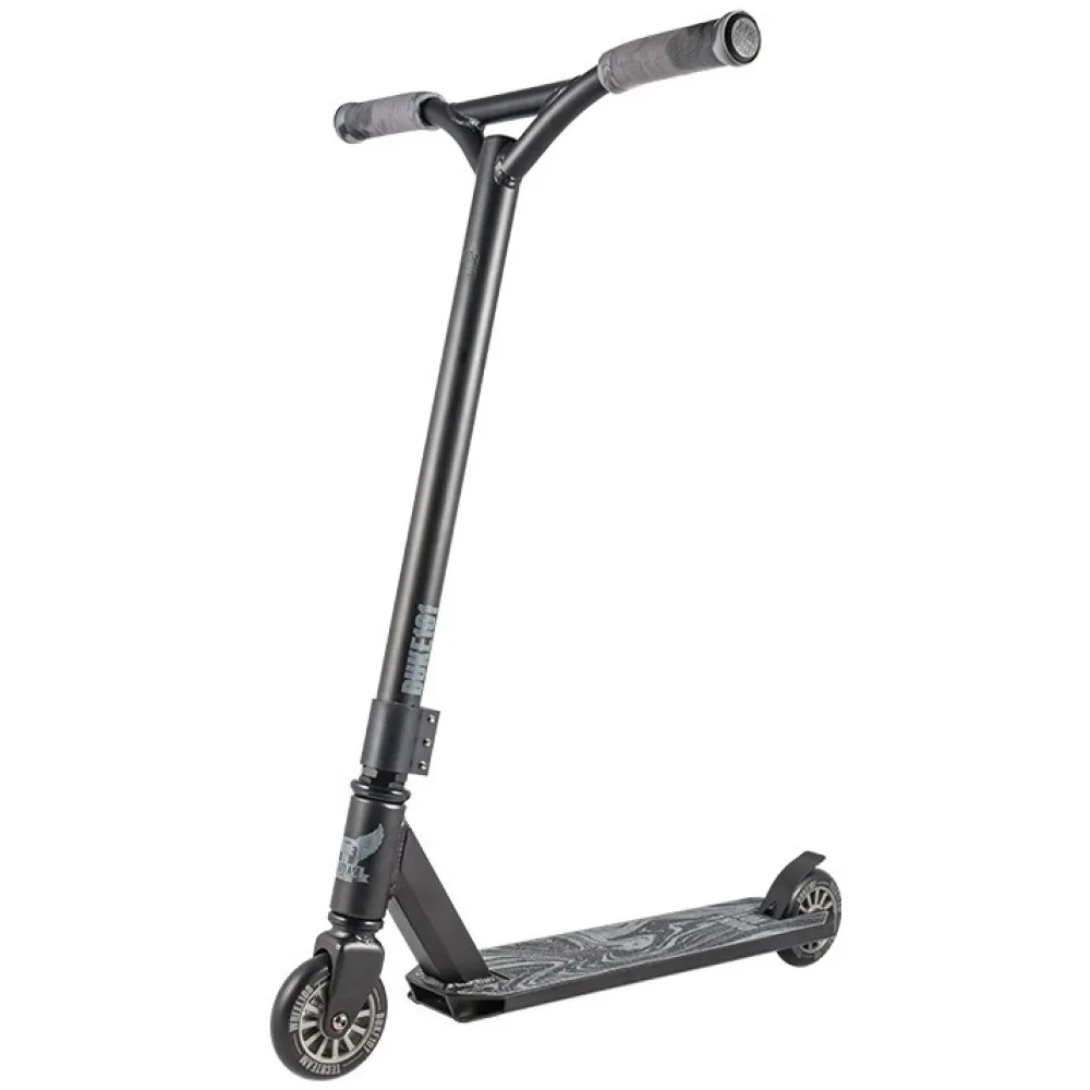Рама и руль изготовлены из облегченного алюминиевого сплава – выбор такого материала обусловлен тем, что для выполнения некоторых трюков тяжелый вес самоката стал бы значительным препятствием.