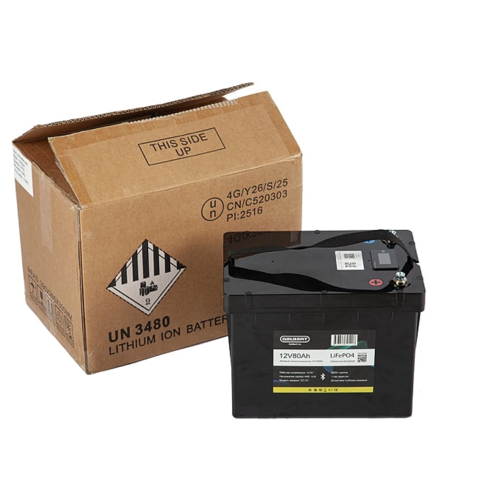 Литиевый тяговый аккумулятор Gelbert LiFePO4 (12V/80Ah/80А/600Wh) BT/Display